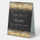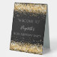 A sign for a girly and glamourous 50th (or any age) birthday party. A black background with faux gold glitter dust. Personalise and add a text, name and age 50. The name is written with a modern hand lettered style script.