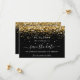 A girly and trendy Save the Date card for a 30th (or any age) birthday party. A classic black background decorated with faux gold confetti and balloons. Personalize and add a date and name/age. The text: Save the Date is written with a large trendy hand lettered style script.