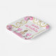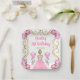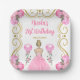 This birthday plate invitation features an elegant gold frame, a beautiful princess with blonde hair and a pink dress, flowers and a balloon. This is perfect for a birthday party.