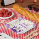 This birthday plate features an elegant gold frame, a beautiful princess with blonde hair and a purple dress, flowers and a balloon. This is perfect for a birthday party.