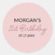 Birthday Party Blush Pink Cute Name Classic Round Sticker