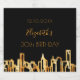 For an elegant 30th (or any age) birthday party for both him, guys or her, women. An elegant black background with an abstract faux gold city skyline as decoration. The text: The name is written with a golden modern hand lettered style script. Personalise and add name, age 30 and a date.