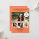 Create your own unique photo collage. Use four, 4 of your favourite photos. Personalise and add a name and party details. A coral, orange coloured background, black text.