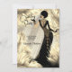 Birthday Party Cream Gold Black Dress Feathers Invitation