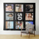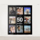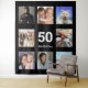 For a 50th (or any age) birthday, celebrating his life with a collage of 8 of your photos of his friends, family, interest or pets. Personalise and the age 50 and a date. Date of birth or the date of the birthday party. White letters. A classic black background colour. Use as party wall decor, welcome banner and as photo booth, photo backdrop.