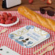 This birthday plate features an elegant gold frame, a beautiful princess with dark skin and a dusty blue dress, flowers and a balloon. This is perfect for a birthday party.