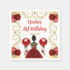This birthday napkin features an elegant gold frame, a beautiful princess with dark skin and a red dress, flowers and a balloon. This is perfect for a birthday party.