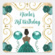 Birthday Party Dark Skin Princess in Teal Square Sticker