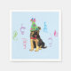 Happy birthday greetings with this design featuring a cute, party hat-wearing German Shepherd puppy surrounded by colourful streamers.