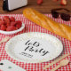 This elegant but playful birthday party design features "Let's Party" script typography in black framed by gold faux foil confetti. Just personalise the name and text to suit your celebration. (Note: The gold look of the confetti is achieved with a printed image, and is not metallic ink or foil.)