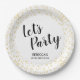 Birthday Party Gold Faux Foil Confetti Let's Party Paper Plate