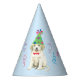 Happy birthday greetings with this design featuring a cute, party hat-wearing Great Pyrenees puppy surrounded by colourful streamers.