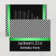 21st Birthday Party Invitations. Suitable for all age birthdays and events. Chequerboard Pattern colours of black and white, Green Trims. Rsvp is available upon request in similar style.