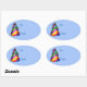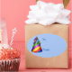 Party gift tag sticker shown with a cute birthday hat. Text of To: & From: on sticker for your gift recipient. Customise or buy as is.