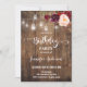 Rustic wood background, with mason jar lights and watercolor marsala flowers. You type your event information over our sample text.