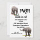 A fun birthday party invitation for the cheeky monkey in your family. A baby elephant standing on a number, with lots of numbers falling in the background. The back has elephants on skateboards.