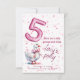 Birthday party invitation, girl 5, pink, goose