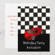 Birthday party invitation with red racing car