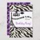 A whimsical and fun design using Zebra print on one side and Leopard print on the other! There are antique French chandeliers and the Eiffel Tower with the words, "Ooooooh lala, it's a Birthday Party!" The art work used to create this invitation was hand painted by Audrey Jeanne Roberts. Available in a wide range of bright colour palettes, this one is lavender, purple, grey and black.