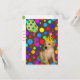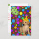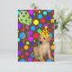 Invitation Kids Girl or Boy Birthday Event Party Green and Purple spot Balloons, Multi Coloured Spots on Brown Labrador Puppy with Yellow and Black Spot Party Hat.