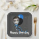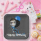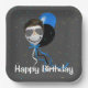 Man's smiling face with hair and aviator sunglasses on party balloons and confetti for a birthday party.