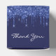 Elegant, classic, glamourous and girly for a 21st (or any age) birthday party favours. A classic navy blue background colour. With the text: 21st Birthday and Thank You written with a modern hand lettered style script. Decorated faux glitter drips, paint dripping look. Personalise and add a name and a date.
