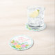 Coasters for a birthday party. Beautiful bouquet of roses and leaves. Pink, coral, yellow, blue, green, turquoise, brown. Modern, fresh, joyful, cute. Happy Birthday and custom name in trendy hand-written font. Turquoise border.
