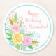 Birthday Party Pineapple Roses Bouquet Pink Yellow Round Paper Coaster