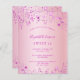 A modern, stylish and glamorous invitation for a girl's Sweet 16, 16th (or any age) birthday party. A pink background decorated with stars. Personalize and add a name and party details.