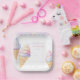 Birthday Party Plates with sweet ice cream illustration in pastel colours.