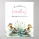 Welcome your guests with cute birthday party supplies featuring our personalised party signs and banners for your little girl's special day! This charming design showcases a bottom border of watercolor ducklings and your daughter’s name in pink, perfectly suited for a One Lucky Duck or duckling birthday party theme.