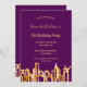 Birthday party purple gold city skyline invitation