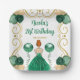 This birthday plate features an elegant gold frame, a beautiful princess with red hair and a green dress, flowers and a balloon. This is perfect for a birthday party.