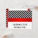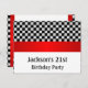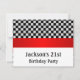 21st Birthday Party Invitations. Suitable for all age birthdays and events. Chequerboard Pattern colours of black and white, Red Trims. Rsvp is available upon request in similar style.
