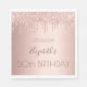 A napkin for a girly and glamorous 50th (or any age) birthday party. A rose gold background with rose gold drips, paint drip look. The text: The name is written in dark rose gold with a large modern hand lettered style script. Template for name, age 50 and a date.