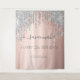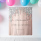 A tapestry for a girly and glamourous 21st (or any age) birthday party. A rose gold , pink gradient background with an elegant rose gold and faux silver glitter drips. The text: The name is written in grey with a modern hand lettered style script with swases. To keep the swashes only delete the sample name, leave the spaces or emoji's in front and after the name. Personalise and add a name, age 21 and a date. Can be used as wall decor for the party or as a photo booth backdrop.