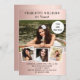 Create your own unique photo collage. Use four, 4 of your favourite photos. Personalise and add a name and party details. Rose gold gradient background, black text.