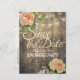 Modern Birthday Party Save The Date Invitation Postcards Templates - Elegant Script with Peach White Roses Flowers and String Lights on Rustic Wood Background.