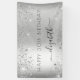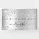 A banner for a girly and glamourous 30th (or any age) birthday party. A faux silver metallic looking background with faux silver glitter dust. The text: Personalise and add a name written in black with a modern hand lettered style script with swashes.