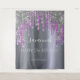 A tapestry for a girly and glamorous 21st (or any age) birthday party. A faux silver looking background with elegant purple and faux silver glitter drips, paint dripping look. The text: The name is written in white with a modern hand lettered style script with swases. To keep the swashes only delete the sample name, leave the spaces or emoji's in front and after the name. Personalize and add a name, age 21 and a date. Can be used as wall decor for the party or as a photo booth backdrop.