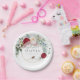 Birthday Party Plates | Eucalyptus leaves, whimsical foliage along with burgundy and ivory peonies grace a geometric gold frame. Rich Vibrant and deliciously elegant. Features a simple classic text style (that can be changed if you like just Click Personalise this template then in the drop down, choose Click to customise further- here you can change the font and text colours as well as background colour) This is also part of a design coordinated wedding suite collection designed by the BarefootBride™.