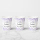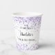 A chic white background decorated with violet faux glitter, confetti. Personalise and add a date name and age. The name is written with a modern hand lettered style script. Black text.