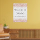 A welcome poster for a girly and glamourous 21st (or any age) birthday party. A stylish white background decorated with rose gold faux glitter, sparkles. Personalise and add a name and age 21. Black letters.