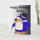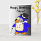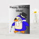Birthday Penguin Black and White Customisable Card