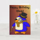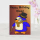 Birthday Penguin Tanned Leather Brown Customisable Card