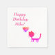 Happy birthday personalized napkins with pink cat drawing and a heart. Easy to add your name/text or personalized color on them.