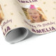 Make every gift extra special with our personalized photo wrapping paper! Featuring a charming design with your child's photo, name, and age, this unique gift wrap adds a personal touch. Perfect for girl's birthday celebration. The elegant star pattern on a cream background creates a festive and memorable presentation. Your gifts look beautiful and stand out, making happy memories before the unwrapping even begins!