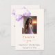 A modern and elegant birthday "all ages" thank you card. A soft ivory colored background, decorated with a large lavender colored bow. Black and golden letters. On the front the text: Thank You, name, and a date. Add a photo.
