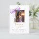 A modern and elegant birthday "all ages" thank you card. A white colored background, decorated with a large lavender colored bow. Black and golden letters. On the front the text: Thank You, name, and a date. Add a photo.