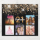A bottle label for a 21st birthday party, celebrating her life with a collage of 5 of your photos. Templates for a name, age 21 and a date. Date of birth or the date of the party. White and golden colored letters. Elegant black background color, decorated with faux gold glitter dust.